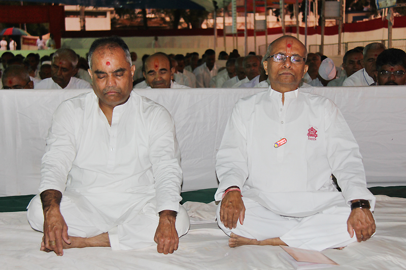 Evening session was started by kirtan bhakti, after that Pujya Nirman Swami gave speech on the topic “Aagnaâ€.Pujya Puran Swami gave speech on “Prarnadaee patra darshanâ€i.e. “Inspirative characters showâ€.