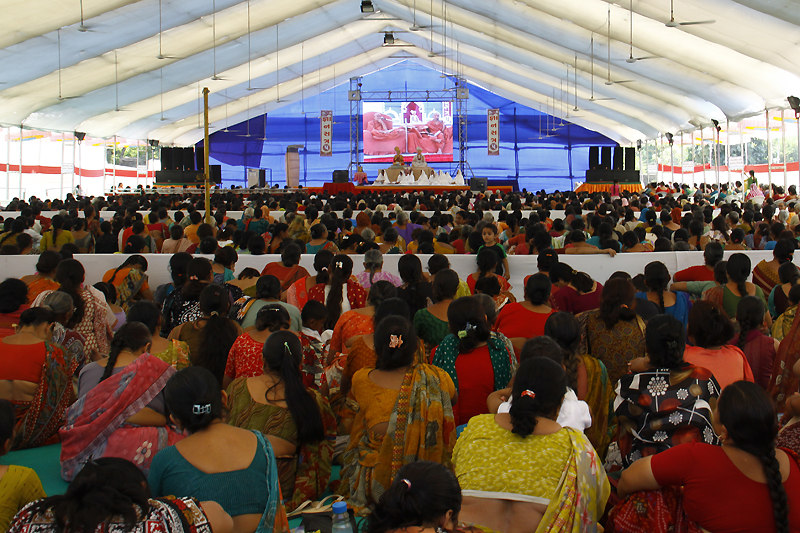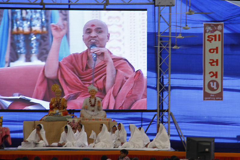 Evening session was started by kirtan bhakti, after that Pujya Nirman Swami gave speech on the topic “Aagnaâ€.Pujya Puran Swami gave speech on “Prarnadaee patra darshanâ€i.e. “Inspirative characters showâ€.