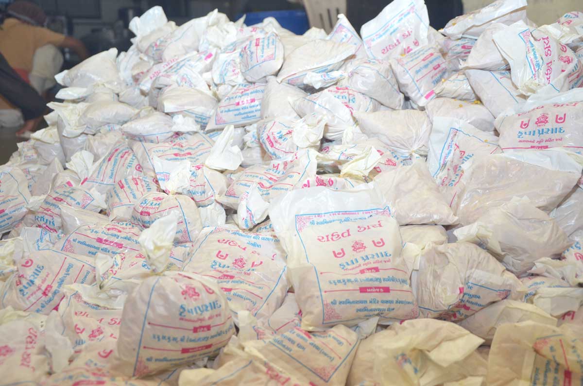 છેલ્લા દશ-બાર દિવસથી સમગ્ર ગુજરાતમાં જ્યારે કુદરતે બારે મેઘ ખાંગા કર્યા છે, ત્યારે ઉત્તર ગુજરાતમાં આભ ફાટવાની તથા પુરની ભયાનક સ્થિતિ છે. ત્યારે સ્વામિનારાયણ સંપ્રદાયની સમગ્ર માનવ સમાજ ને ઉપયોગી થવાની ભાવના પ્રમાણે પ.પૂ.બાપજી (પ.પૂ.દેવનંદનદાસજી સ્વામી) ની આજ્ઞા થી SMVS સંસ્થા દ્વારા સ્વામિનારાયણ ધામ, ગાંધીનગર ખાતે પૂ.સંતો તથા ૧૦૦ જેટલા સ્વયંસેવકો દ્વારા ૨૦,૦૦૦ નંગ ફૂડ પેકેટ્સ માં ચવાણું અને સુખડી તૈયાર કરી અસરગ્રસ્તોને તાત્કાલિક ધોરણે મોકલી આપવામાં આવેલ છે. તથા ગાંધીનગર જીલ્લાના કલેકટરશ્રીને પણ પુર રાહત કાર્ય માટે ફૂડપેકેટ્સ મોકલી આપવામાં આવેલ છે.
