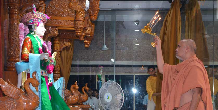 This Arti, composed by Sadguru Muktanand Swami, is sung in many mandirs during evening time. It clearly communicates the divine glory of Shriji Maharaj.